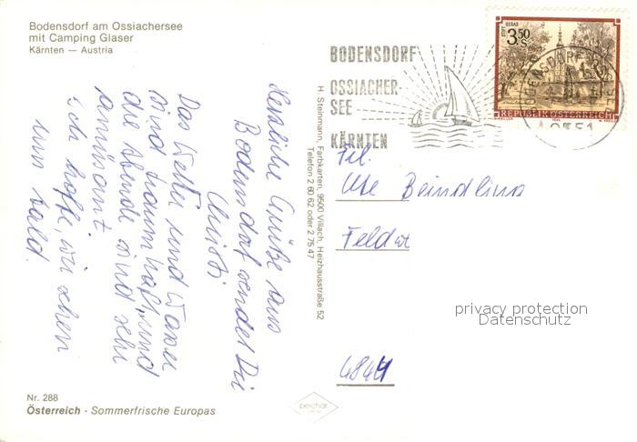 73286602 alte Postkarte Bodensdorf Ossiacher See Fliegeraufnahme Camping Glaser postalisch gelaufen Erhaltung siehe scans [NatalD47] KatCode: 11390