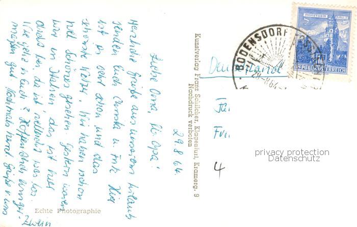 73753321 alte Postkarte Bodensdorf Ossiacher See Fliegeraufnahme mit Julische Alpen postalisch gelaufen Erhaltung siehe scans [WerneD78] KatCode: 11390