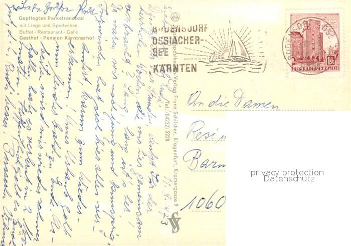 73165173 alte Postkarte Bodensdorf Ossiacher See Strandbad Toff postalisch gelaufen Erhaltung siehe scans [LiesaD40] KatCode: 11390