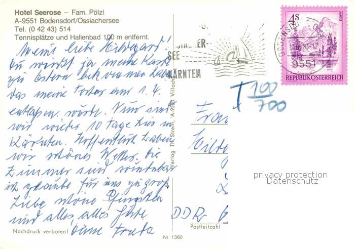 72667019 alte Postkarte Bodensdorf Steindorf Hotel Seerose postalisch gelaufen Erhaltung siehe scans [LiesaD40] KatCode: 11390