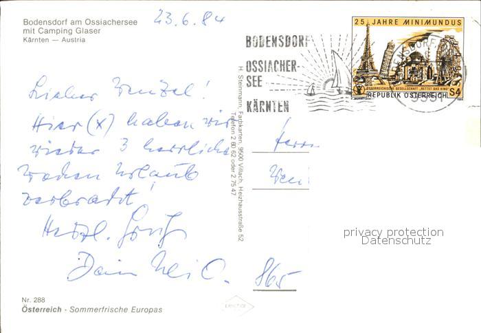 72048999 alte Postkarte Bodensdorf Steindorf mit Camping Glaser Fliegeraufnahme postalisch gelaufen Erhaltung siehe scans KatCode: 11390