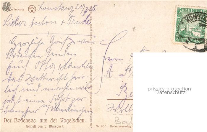 43511626 alte Postkarte Bodensee Region und Umgebung mit Alpen aus der Vogelperspektive Kuenstlerkarte postalisch gelaufen Erhaltung siehe scans [FriedD77] KatCode: 11110008335043