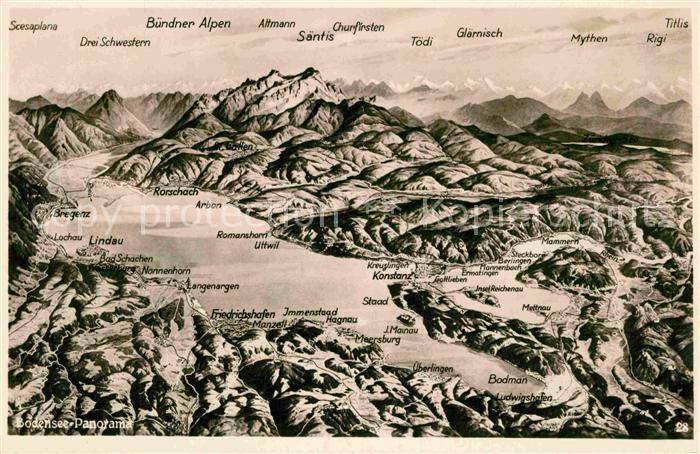 72812470 Bodensee und Umgebung mit Alpenpanorama aus der Vogelperspektive postalisch nicht gelaufen Reliefkarte Erhaltung siehe scans [FriedD77] KatCode: 11110003152003