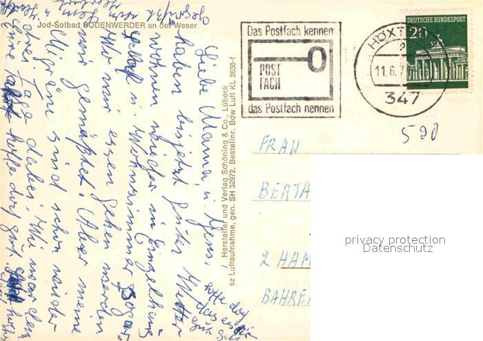 72856901 alte Postkarte Bodenwerder Fliegeraufnahme postalisch gelaufen Erhaltung siehe scans [AndreD76] KatCode: 11110003255003