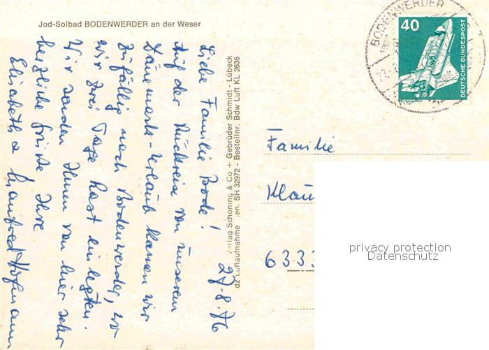 72620545 alte Postkarte Bodenwerder Fliegeraufnahme mit Weser postalisch gelaufen Erhaltung siehe scans [LiesaD40] KatCode: 11110003255003
