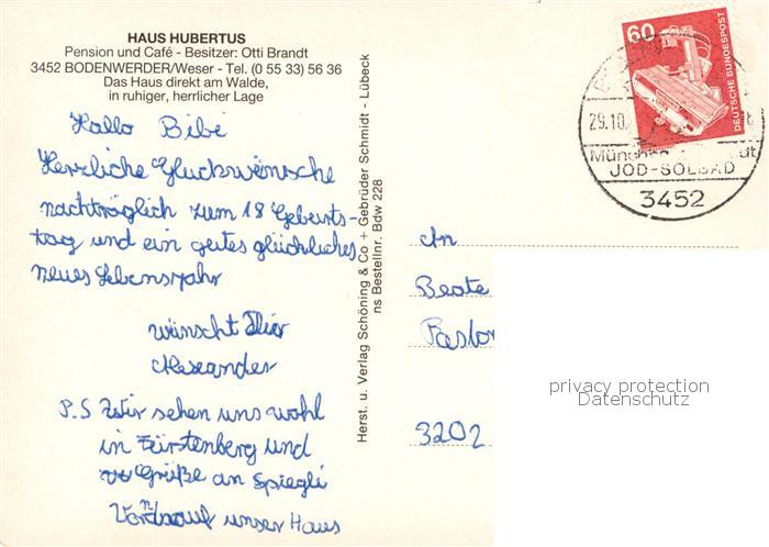 73768263 alte Postkarte Bodenwerder Haus Hubertus Pension und Cafe postalisch gelaufen Erhaltung siehe scans [WerneD78] KatCode: 11110003255003