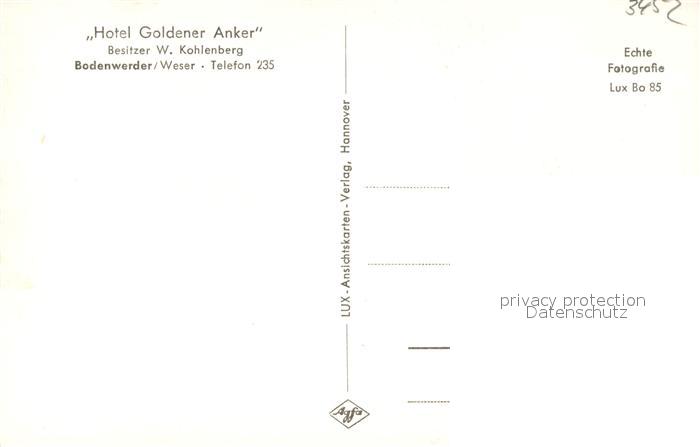 43366584 Bodenwerder Hotel Goldener Anker an der Weser postalisch nicht gelaufen Erhaltung siehe scans [FriedD77] KatCode: 11110003255003