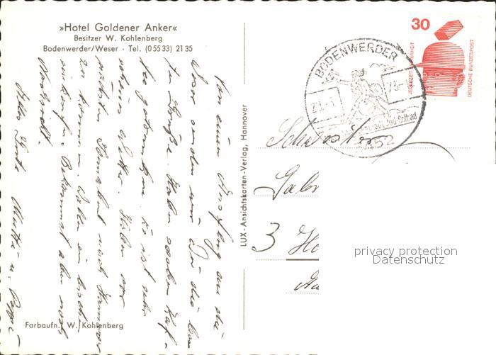 72105009 alte Postkarte Bodenwerder Hotel Goldener Anker postalisch gelaufen Erhaltung siehe scans KatCode: 11110003255003