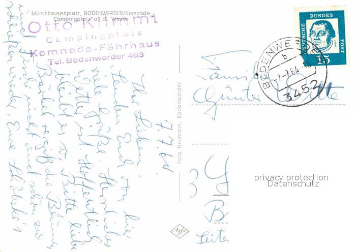 32839145 alte Postkarte Bodenwerder Muenchhausenplatz Campingplatz postalisch gelaufen Erhaltung siehe scans [KathaD81] KatCode: 11110003255003