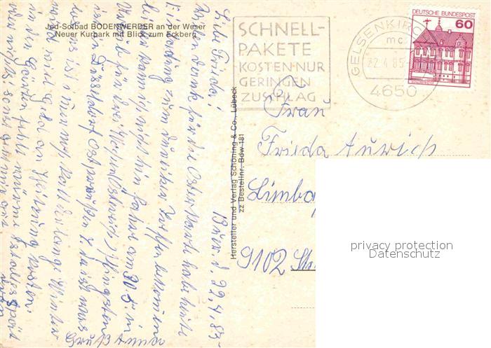 72866672 alte Postkarte Bodenwerder Neuer Kurpark Eckberg postalisch gelaufen Erhaltung siehe scans [NatalD47] KatCode: 11110003255003