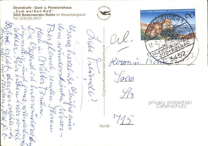 72421186 alte Postkarte Bodenwerder StrandCafe Pension Gasthaus Zum Weissen Ross postalisch gelaufen Erhaltung siehe scans KatCode: 11110003255003