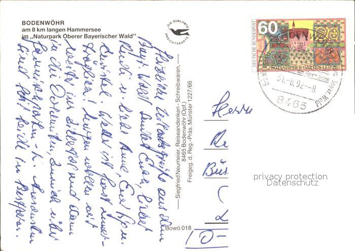 72057266 alte Postkarte Bodenwoehr am Hammersee Naturpark Oberer Bayerischer Wald Fliegeraufnahme postalisch gelaufen Erhaltung siehe scans KatCode: 11110009376116