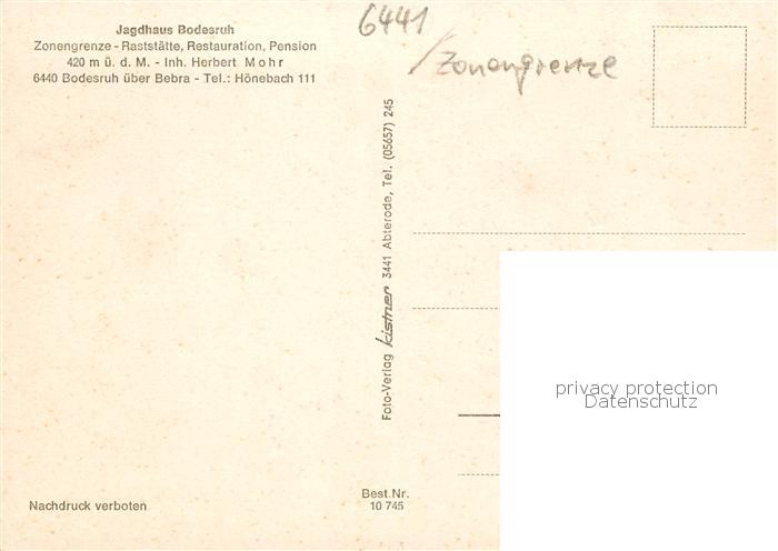 73865494 Bodesruh Jagdhaus Zonengrenze Raststaette Aussichtsturm postalisch nicht gelaufen Erhaltung siehe scans [FriedD77] Frie Katcode 11110006632003