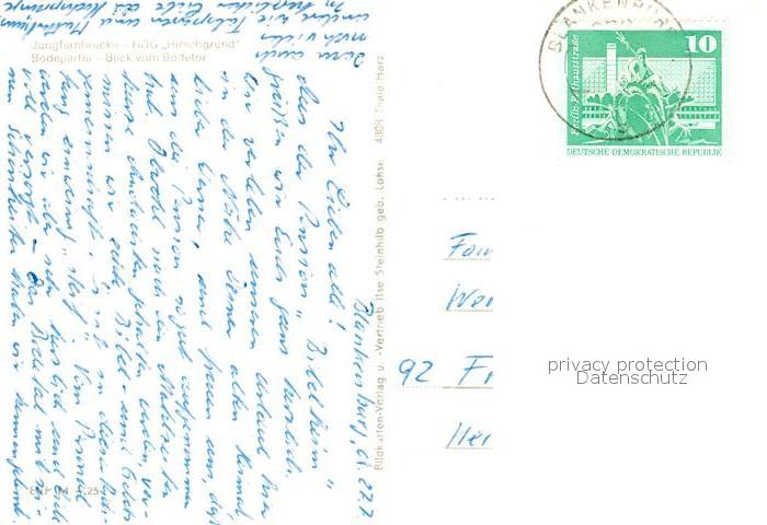 73034397 alte Postkarte Bodetal Harz Jungfernbruecke HOG Hirschgrund Bodepartie Bodetor postalisch gelaufen Erhaltung siehe scans [WerneD78] KatCode: 11110015085340