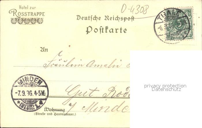 42436977 alte Postkarte Bodetal Harz Rosstrappe Teufelsbr?cke Hotel zur Rosstrappe postalisch gelaufen Erhaltung siehe scans KatCode: 11110015085340