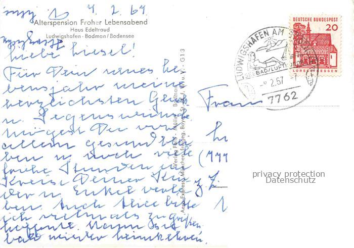 74121068 alte Postkarte Bodman-Ludwigshafen Bodensee Alterspension Froher Lebensabend Haus Edeltraud postalisch gelaufen Fliegeraufnahme Erhaltung siehe scans [FriedD77] KatCode: 11110008335098