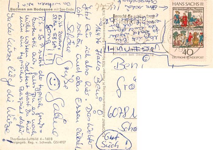 73943193 alte Postkarte Bodman-Ludwigshafen Bodensee Fliegeraufnahme postalisch gelaufen Erhaltung siehe scans [FriedD77] KatCode: 11110008335098