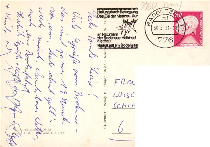 73938163 alte Postkarte Bodman-Ludwigshafen Bodensee Fliegeraufnahmen Burgruine Kirche postalisch gelaufen Erhaltung siehe scans [WerneD78] KatCode: 11110008335098