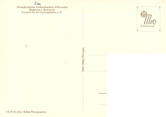 73868952 Bodman-Ludwigshafen Bodensee Fremdenheim Eschenbacher Ellensohn postalisch nicht gelaufen Erhaltung siehe scans [FriedD77] KatCode: 11110008335098
