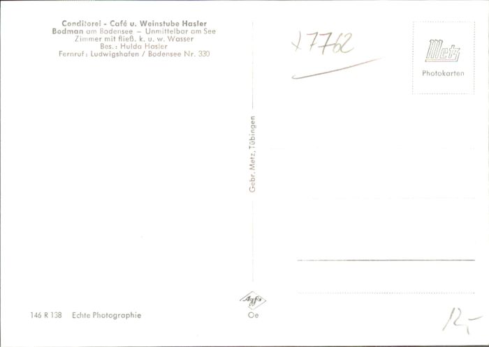 Bodman-Ludwigshafen Conditorei Cafe Weinstube Hasler