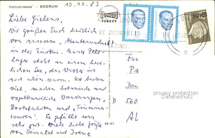old postcard Bodrum Halicarnasus Kamel Segelboot Palmenstrasse postalisch gelaufen Erhaltung siehe scans