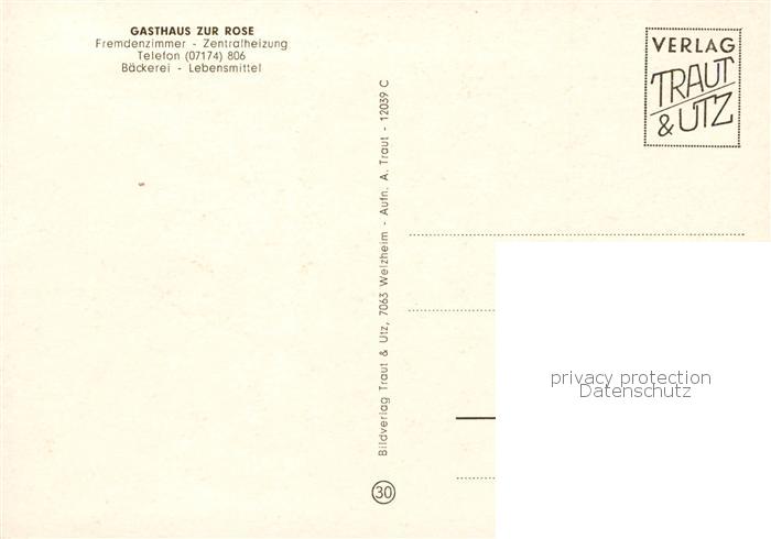 73852886 Boebingen Rems Gasthaus Rose Kath Kirche Rathaus postalisch nicht gelaufen Erhaltung siehe scans [WerneD78] KatCode: 11110008136009