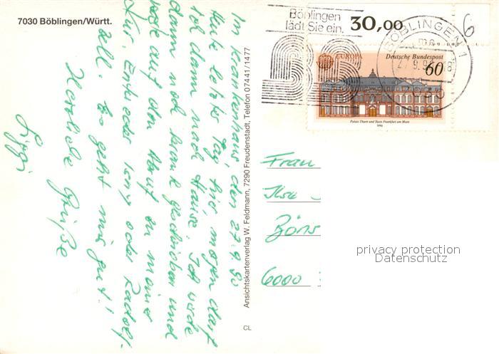 73190241 alte Postkarte Boeblingen Marktplatz postalisch gelaufen Erhaltung siehe scans [NatalD47] KatCode: 11110008115003