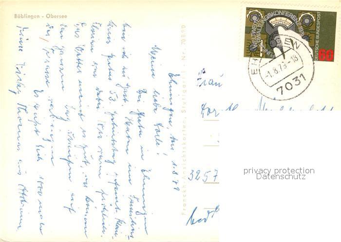 73190251 alte Postkarte Boeblingen Obersee postalisch gelaufen Erhaltung siehe scans [NatalD47] KatCode: 11110008115003