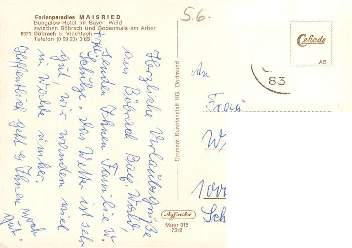 73887222 Boebrach Bayern Ferienparadies Maisried Bungalow Hotel Gaststube Freibad postalisch nicht gelaufen Erhaltung siehe scans [WerneD78] KatCode: 11110009276118