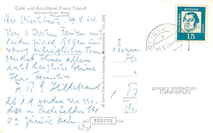 33658379 alte Postkarte Boebrach Cafe Konditorei Franz Triendl Gaststube Panorama Bachlauf postalisch gelaufen Erhaltung siehe scans [WerneD78] KatCode: 11110009276118