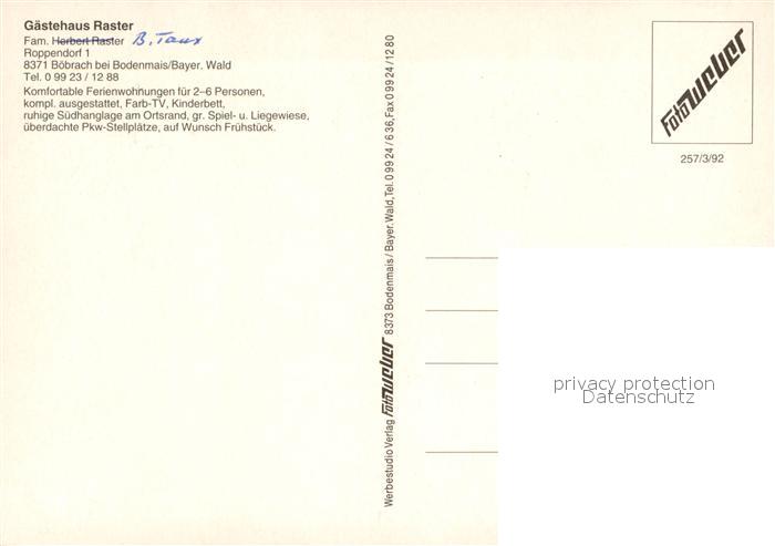 73651199 Boebrach Gaestehaus Raster Ferienwohnungen Panorama Bayerischer Wald postalisch nicht gelaufen Erhaltung siehe scans [FriedD77] KatCode: 11110009276118