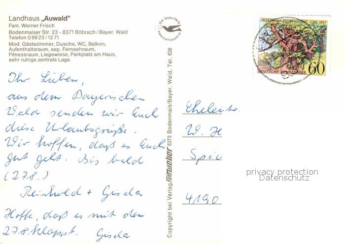 72786429 alte Postkarte Boebrach Landhaus Auwald postalisch gelaufen Erhaltung siehe scans [AndreD76] KatCode: 11110009276118