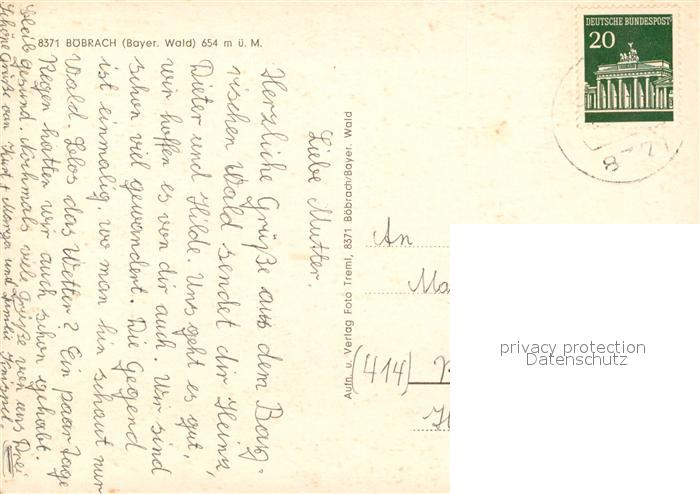 73310222 alte Postkarte Boebrach Ortsmotiv mit Kirche Landschaftspanorama Bayerischer Wald postalisch gelaufen Erhaltung siehe scans [FriedD77] KatCode: 11110009276118