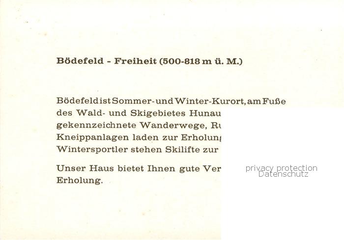 73837314 Boedefeld Cafe Hunaustube Wassertretanlage Panorama Viehauftrieb Schlepplift postalisch nicht gelaufen Werbekarte (keine Postkarte) Erhaltung siehe scans [WerneD78] KatCode: 11110005958040
