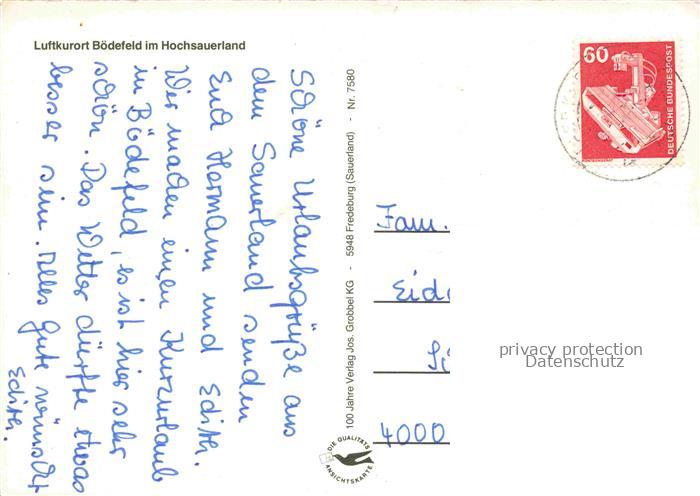 74043719 Boedefeld Schmallenberg Hochsauerlandkreis NRW Ortsansicht mit Kirche Landschaft postalisch gelaufen Erhaltung siehe scans [FriedD77] alte Postkarte Frie Katcode 11110005958040