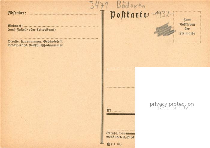 73702570 Boedexen Haus-Zeichnung postalisch nicht gelaufen Erhaltung siehe scans [LiesaD40] KatCode: 11110005762020