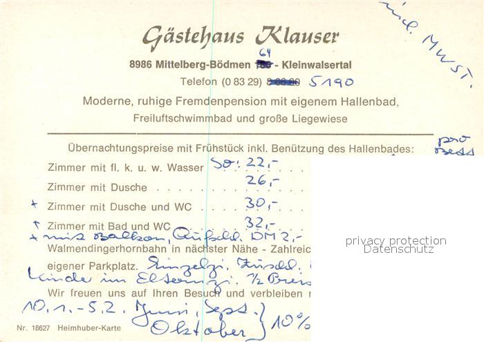 73683236 Boedmen Gaestehaus Klauser Hallenbad Gaststube postalisch nicht gelaufen Werbekarte (keine Postkarte) Erhaltung siehe scans [WerneD78] KatCode: 11470500340664