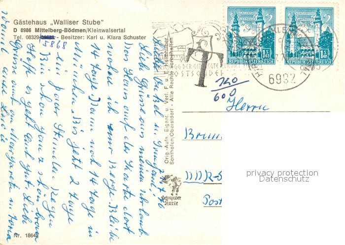 73747535 alte Postkarte Boedmen Gaestehaus Walliser Stube Gastraum Zimmer postalisch gelaufen Erhaltung siehe scans [WerneD78] KatCode: 11470500340664