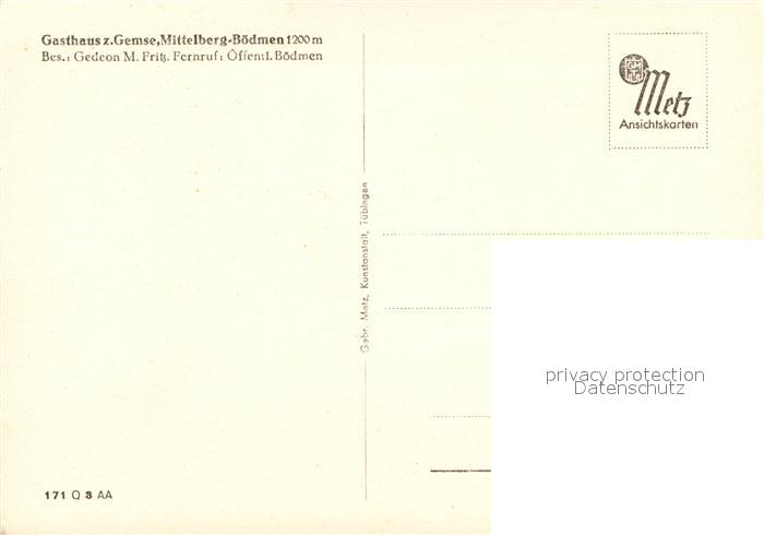 Boedmen Gasthaus zur Gemse postalisch nicht gelaufen Erhaltung siehe scans [WerneD78]