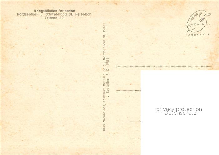 73743242 Boehl St Peter-Ording Kriegsblinden Feriendorf postalisch nicht gelaufen Erhaltung siehe scans [FriedD77] KatCode: 11110001054113