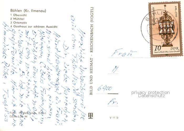 73841612 alte Postkarte Boehlen Thueringen uebersicht Muehltal Ortsmotiv Gasthaus zur schoenen Aussicht postalisch gelaufen Erhaltung siehe scans [FriedD77] KatCode: 11110016070005