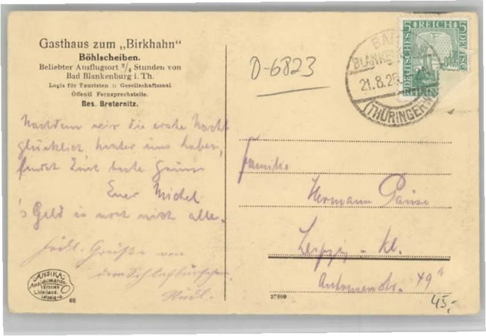 40636406 Boehlscheiben Gasthaus Birkhahn postalisch gelaufen Alte Ansichtskarte Postkarte alte Postkarte Katcode 11110016073005