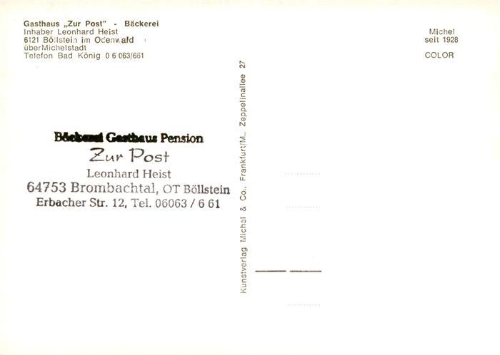73887547 Boellstein Brombachtal Gasthaus Zur Post postalisch nicht gelaufen Erhaltung siehe scans [FriedD77] KatCode: 11110006437005