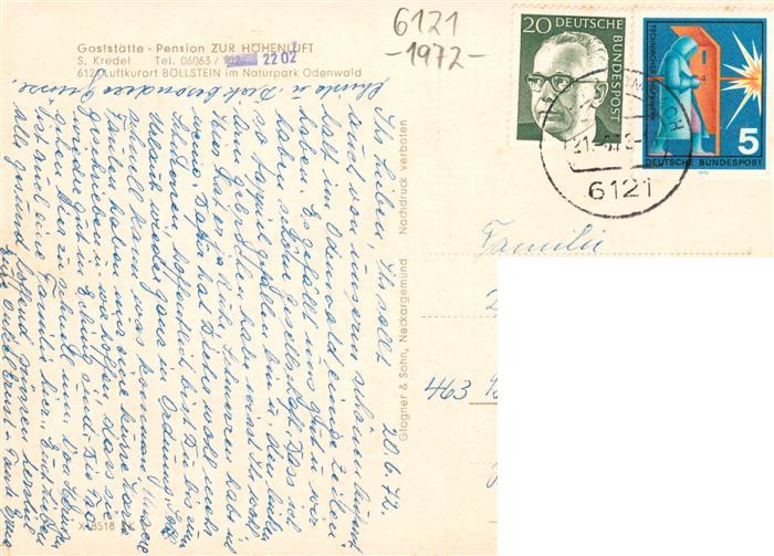 73894528 alte Postkarte Boellstein Brombachtal Haus Hoehenluft Gastraum Brunnen Terrasse postalisch gelaufen Erhaltung siehe scans [WerneD78] KatCode: 11110006437005