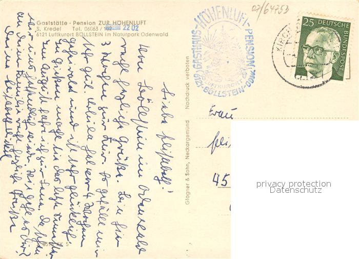 73654480 alte Postkarte Boellstein Gaststaette Pension Zur Hoehenluft Gastraum Terrasse Garten postalisch gelaufen Erhaltung siehe scans [FriedD77] KatCode: 11110006437005