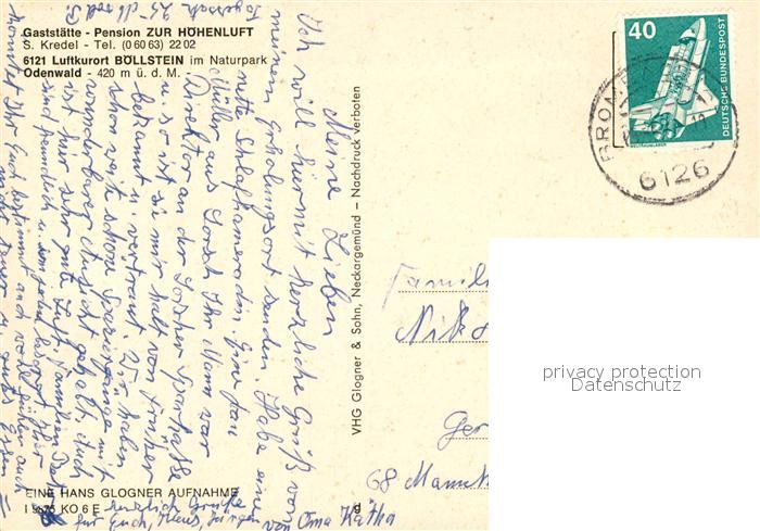 73171884 alte Postkarte Boellstein Gaststaette Pension Zur Hoehenluft Luftkurort Felsen postalisch gelaufen Erhaltung siehe scans [FriedD77] KatCode: 11110006437005