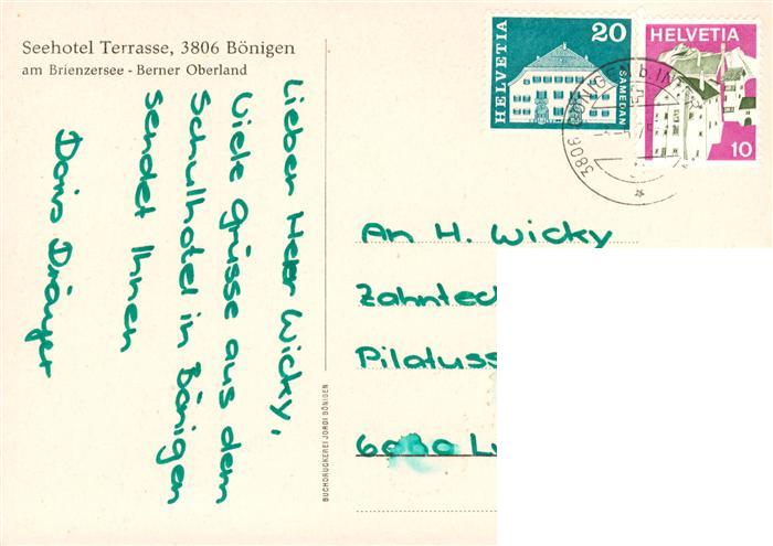 13872626 alte Postkarte Boenigen Brienzersee Seehotel Terrasse postalisch gelaufen Erhaltung siehe scans [WerneD78] KatCode: 11470060175236