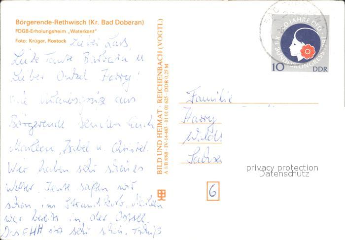 72152581 alte Postkarte Boergerende-Rethwisch FDGB Erholungsheim Waterkant postalisch gelaufen Erhaltung siehe scans KatCode: 11110013051013