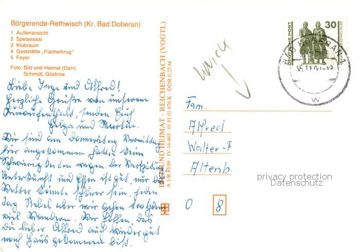 73784698 alte Postkarte Boergerende-Rethwisch FDGB-Erholungsheim Waterkant Innen- u. Aussenansichten postalisch gelaufen Erhaltung siehe scans [LiesaD40] KatCode: 11110013051013