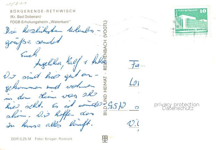 73753617 alte Postkarte Boergerende-Rethwisch FDGB Erholungsheim Waterkant postalisch gelaufen Erhaltung siehe scans [FriedD77] KatCode: 11110013051013